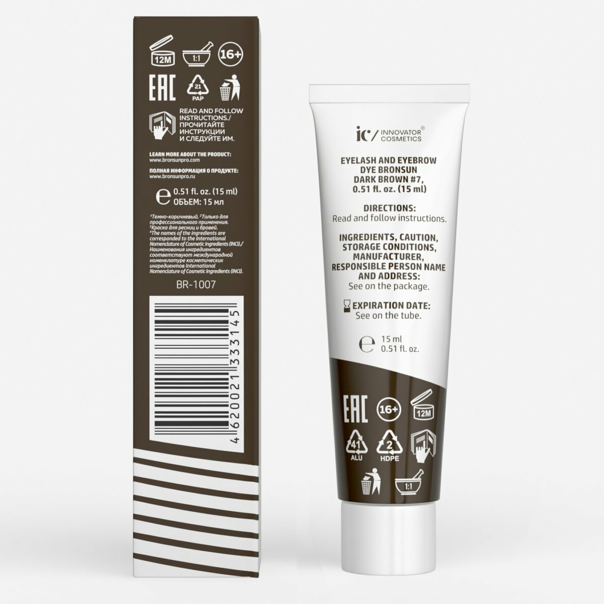 Крем-краска для бровей и ресниц BRONSUN, цвет темно-коричневый #7 new, 15 мл