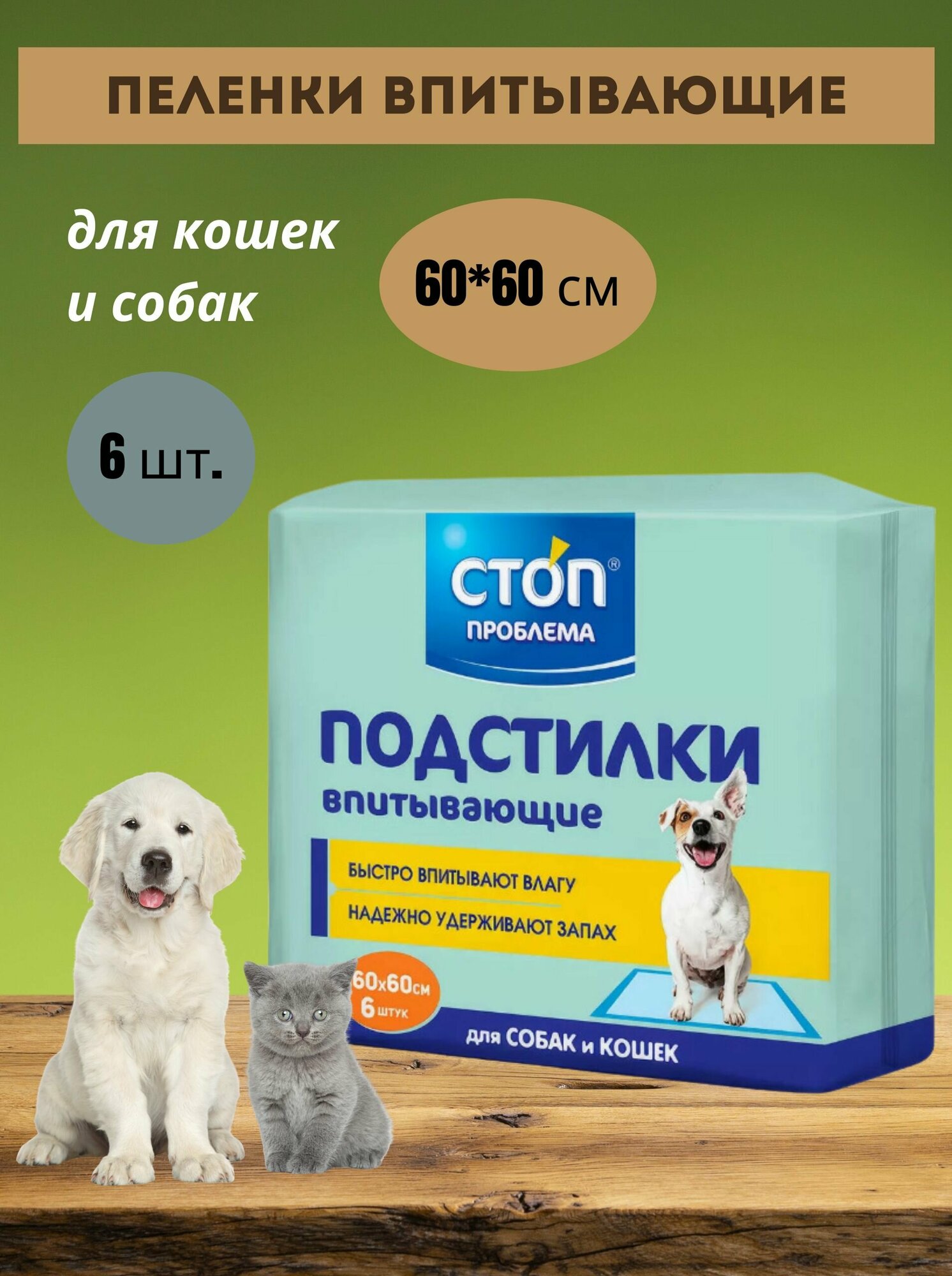 Пеленки (подстилки) впитывающие, для собак и кошек, 60х60 см, 6 шт, стоп проблема