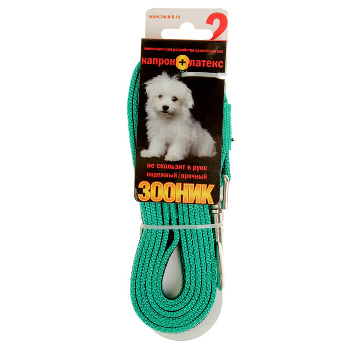 Зооник Поводок капроновый с латексной нитью 2м х 20мм, Зеленый