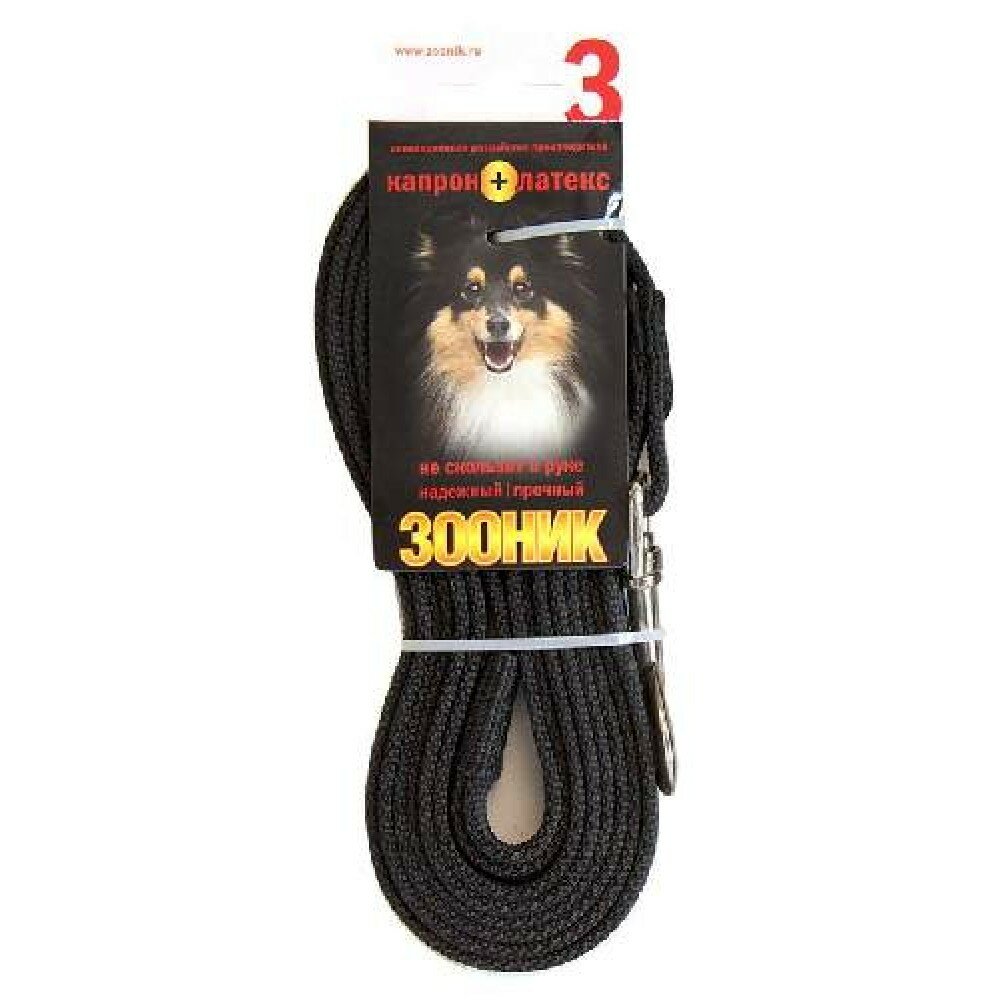 Поводок для собак Зооник капрон+латексная нить 3 м 20 мм черный