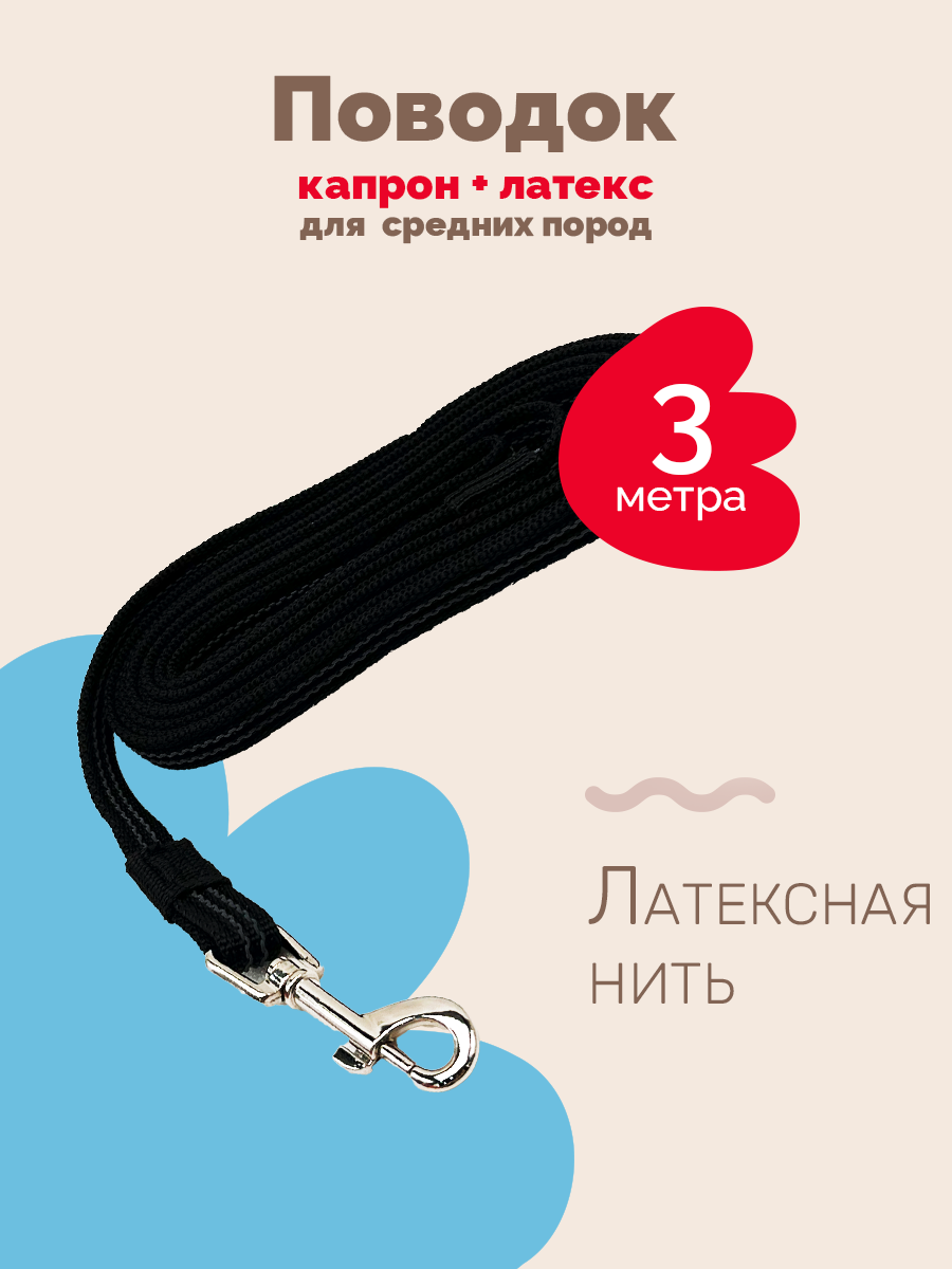 Купить Поводок для собак Зооник капрон+латексная нить 3 м 15 мм черный