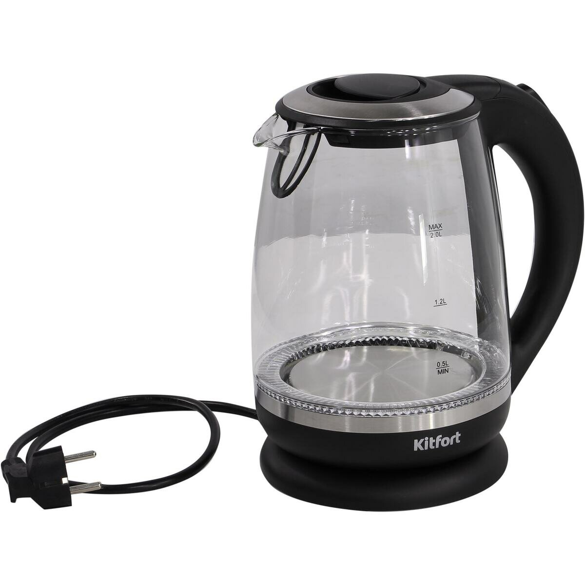Чайник электрический Kitfort KT-655, стекло, 1.5 л, 2200 Вт, чёрно-серебристый