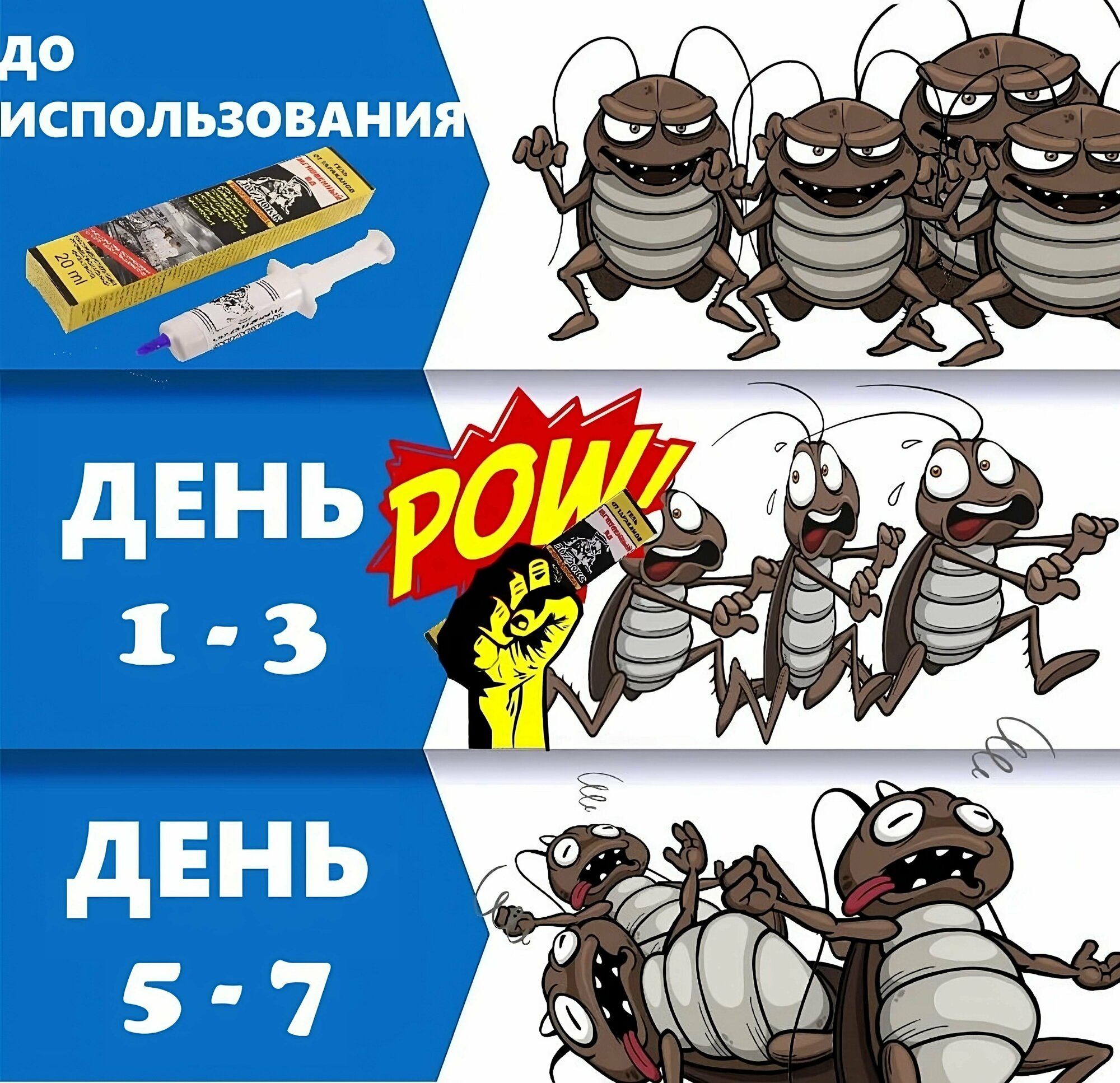 | Плюсы: | Прошло 3 недели тараков нет!!! По принципу действия, зараженный таракан должен уйти в свою колонию. Это важно. Дома живут люди, кошка, рыбки не пострадают. Нет отравления воздуха.