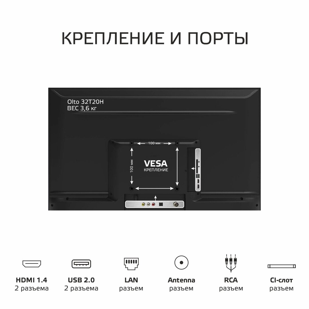 Телевизор OLTO 32T20H / HD Ready / Direct LED / телетекст / диагональ 32" / 60 Гц, черный