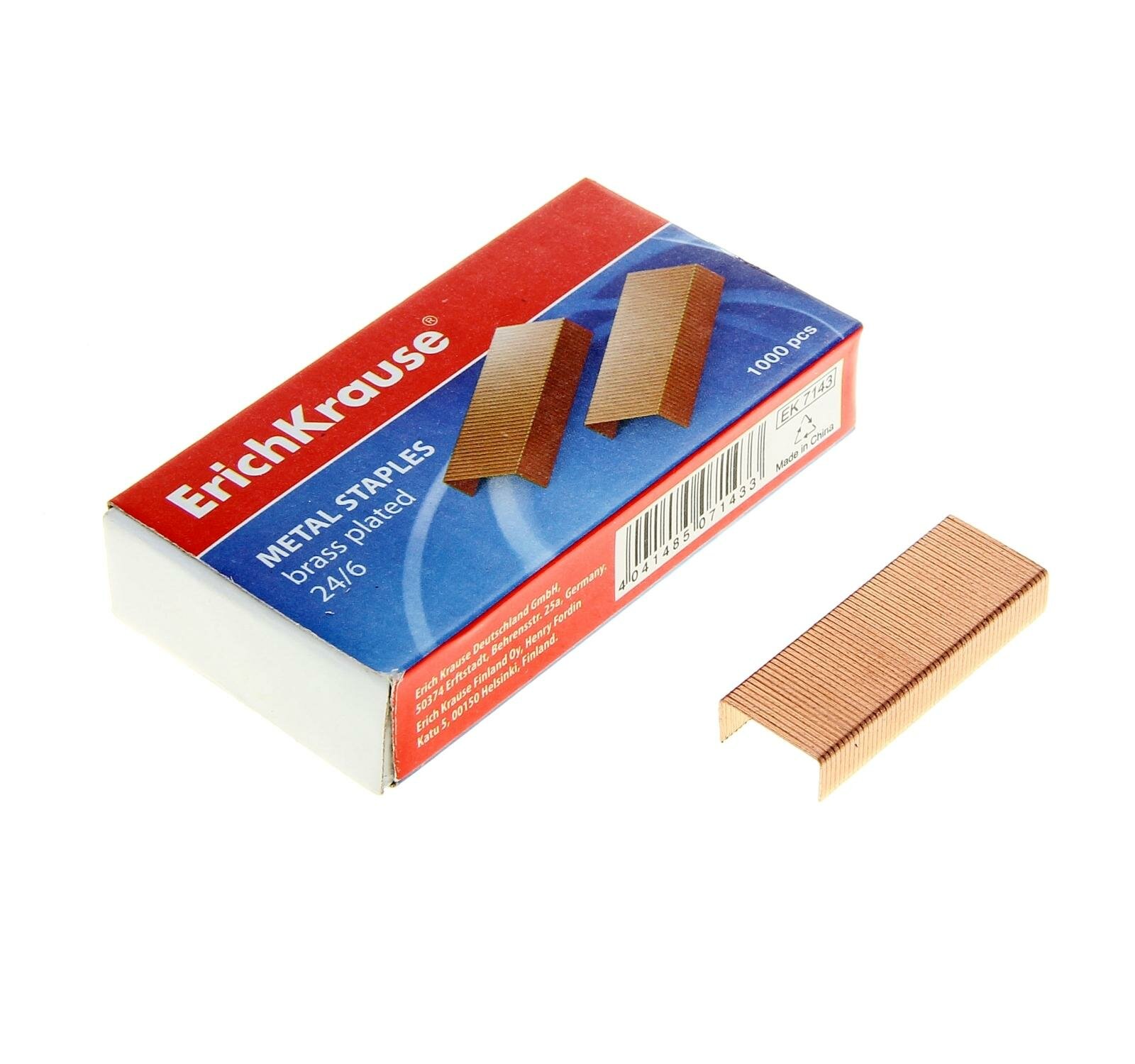Скобы для степлеров Erich Krause, №24/6, медное покрытие, 1000шт. (7143)