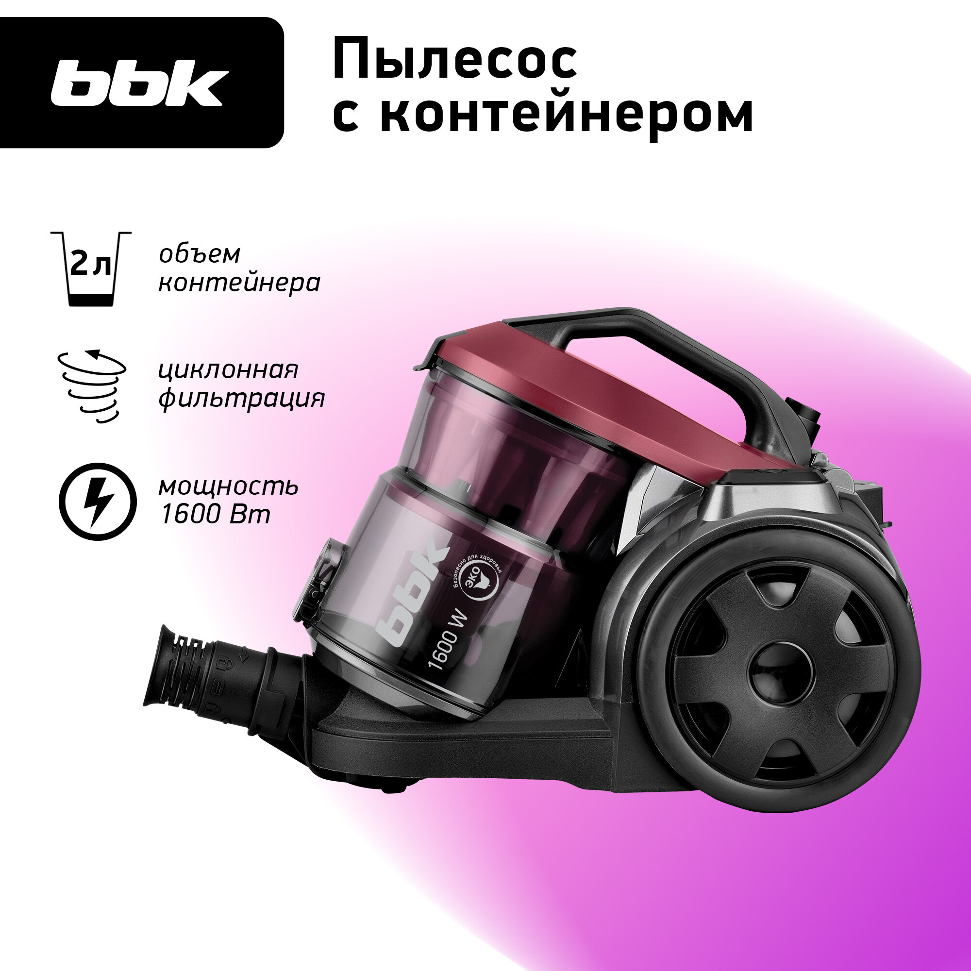 Пылесос BBK BV1502 BLACK/CHERRY
