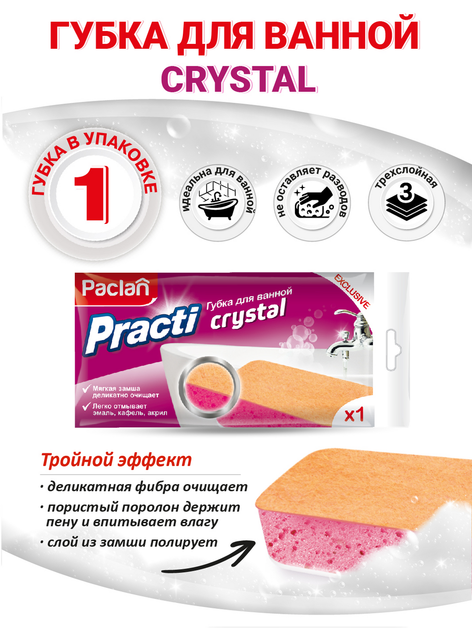 Купить Paclan Practi Crystal Губка для ванной с абразивным слоем из искуственной замши