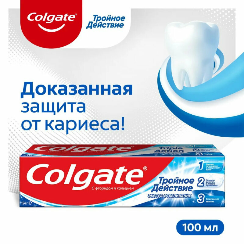 Colgate Зубная паста Тройное действие Экстра отбеливание для восстановления естественной белизны зубов 100 мл - 1 шт