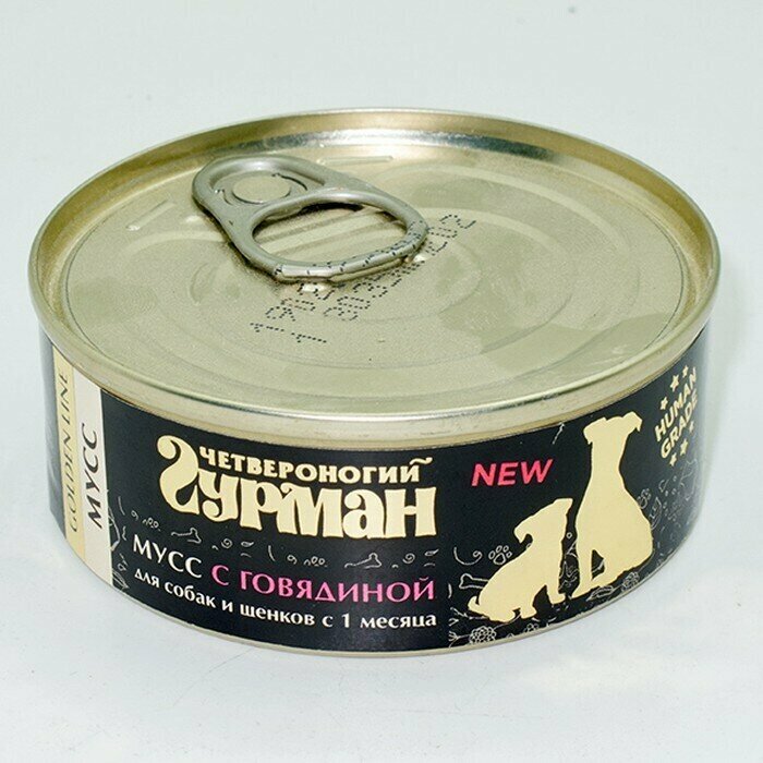 Консервы Четвероногий Гурман Золотая линия для собак и щенков Мусс с говядиной 100г