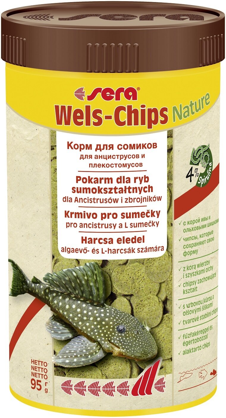 Купить SERA WELS CHIPS корм чипсы для сомов прилипал (250 мл)