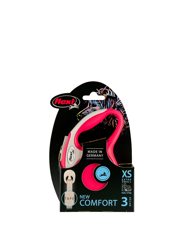 Поводок Flexi New Comfort XS, 3 м, 12 кг, лента, розовый