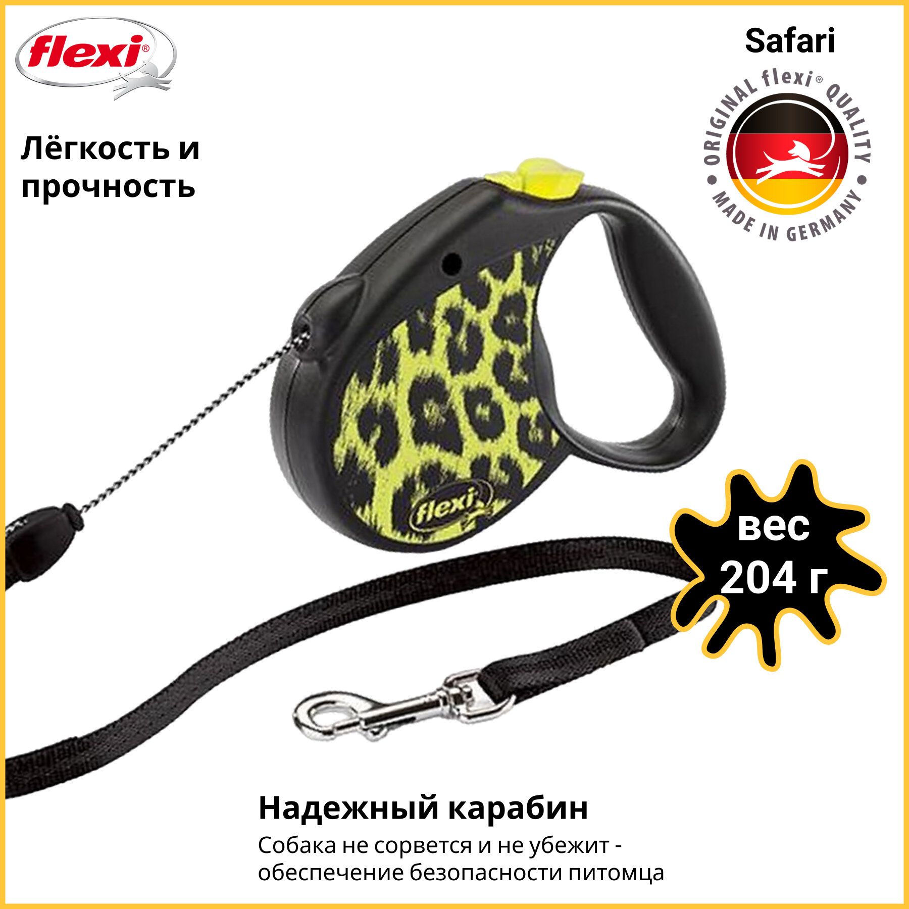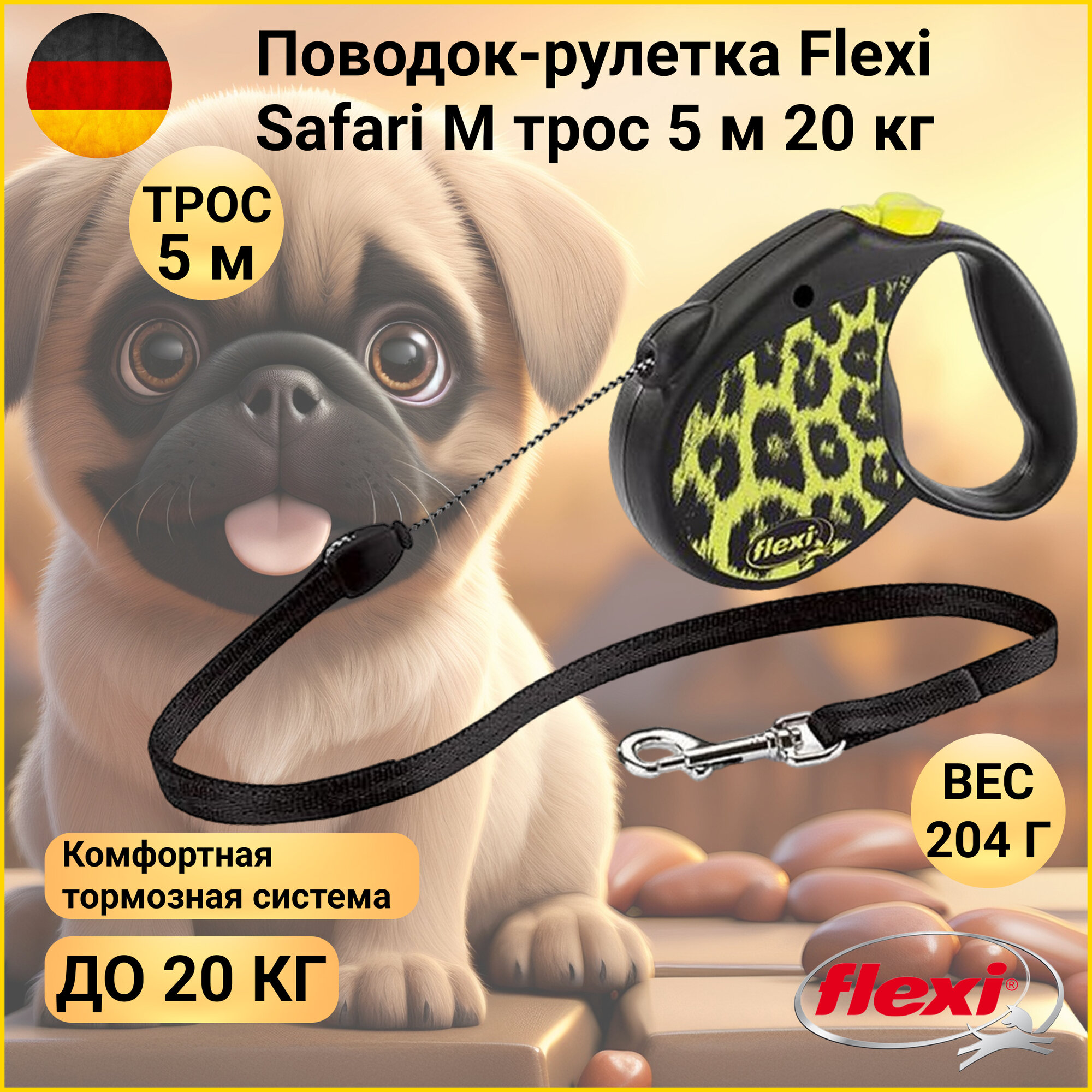 Рулетка Flexi Safari M (до 20 кг) 5 м трос, желтый леопард (yellow Leopard)