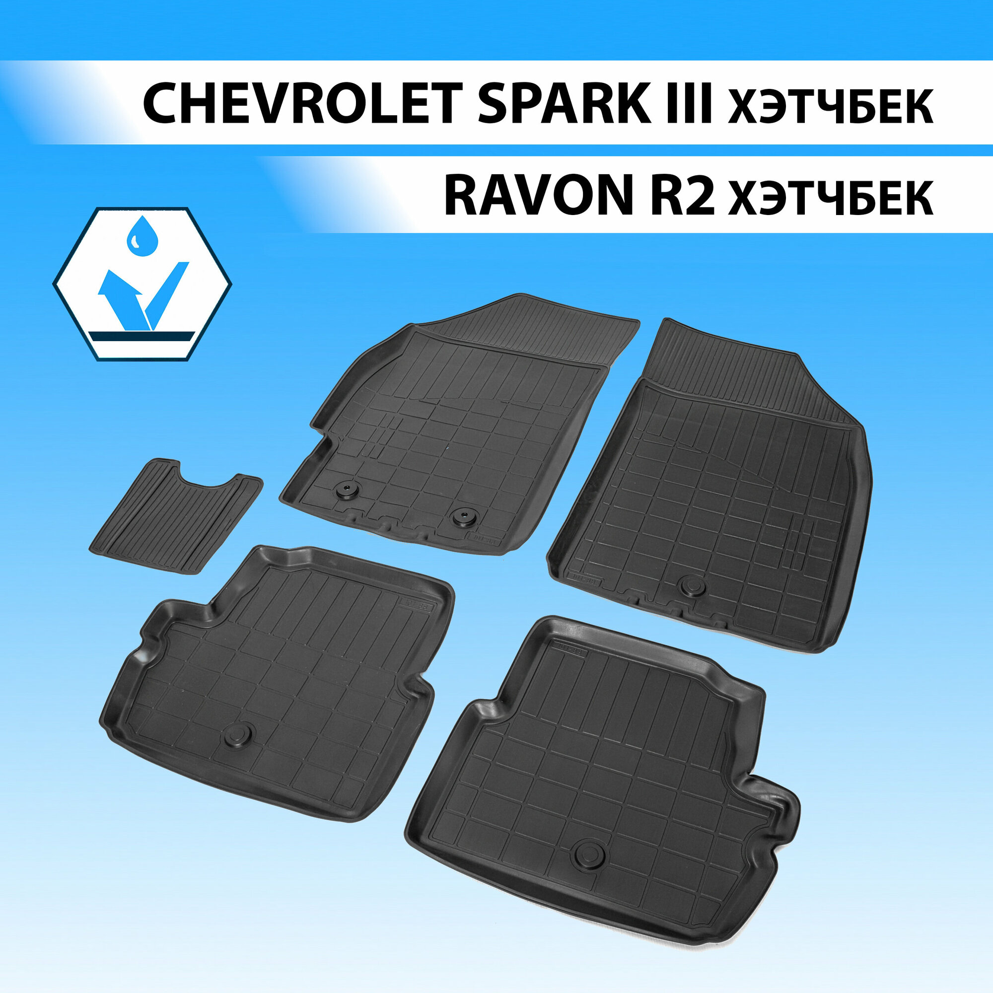 RIVAL 11006001 Комплект автомобильных ковриков в салон Chevrolet Spark III хэтчбек 2009-2016 2020-н.в./Ravon R2 хэтчбек 2016-н.в., полиуретан, с крепежом, 5 шт.
