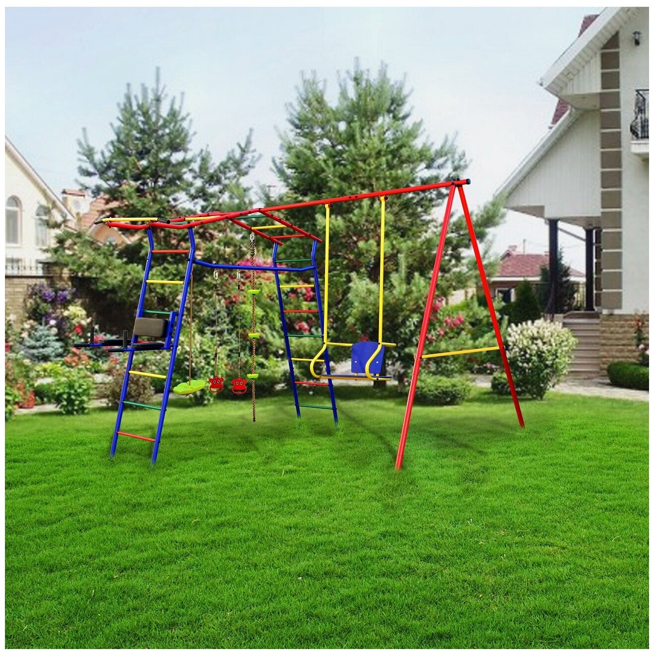 Спортивно-игровой комплекс КМС Игромания-3 Пресс дачный, синий/красный/желтый