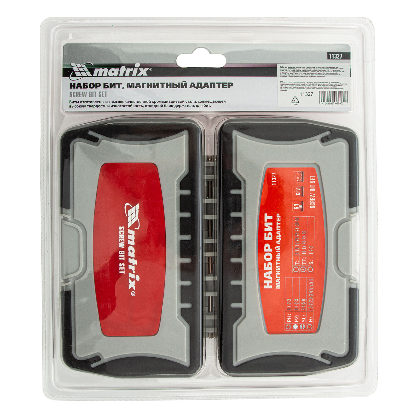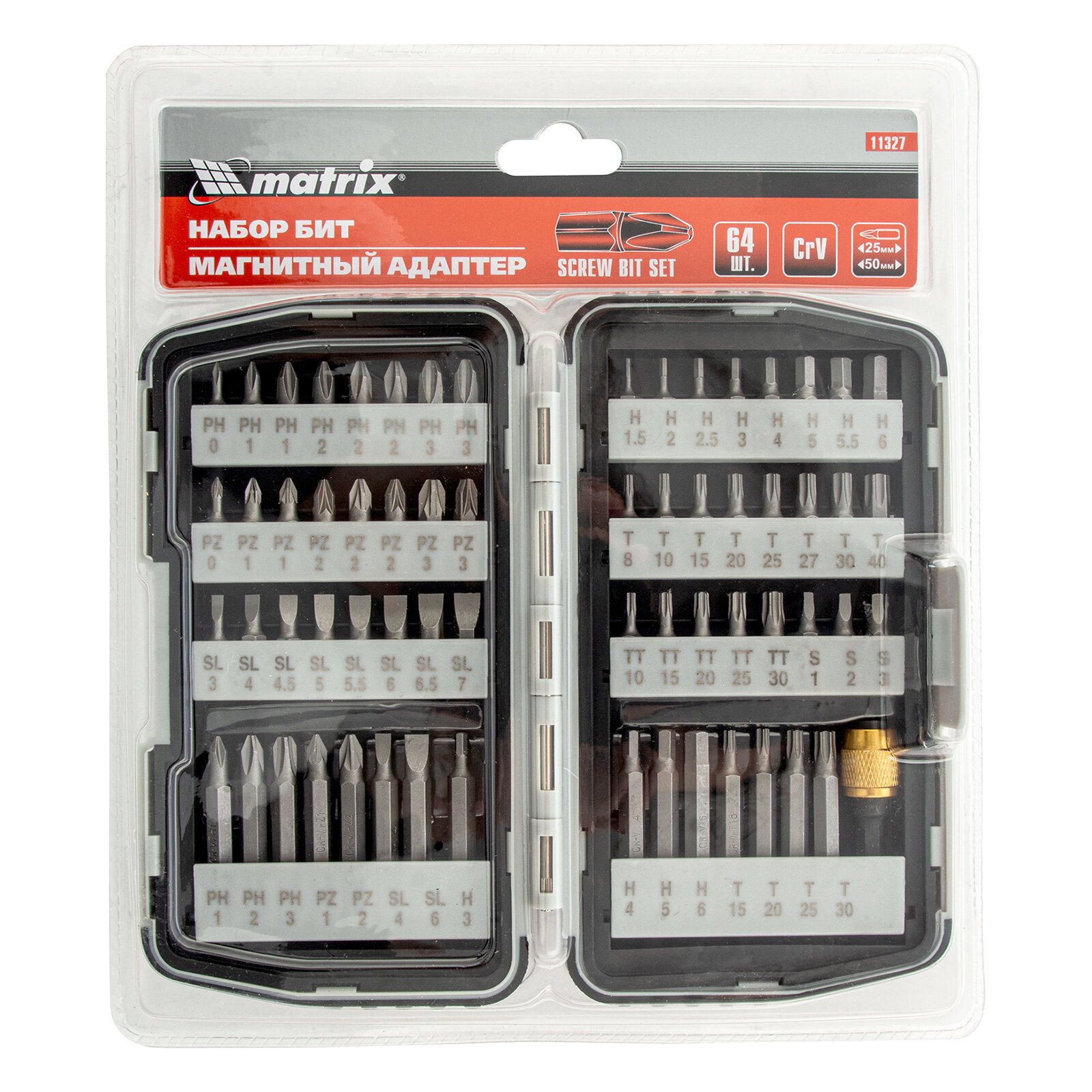 Набор бит MATRIX 11327 магнитный адаптер crv в плат.боксе 64шт