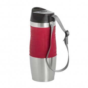 | Плюсы: | Хорошо держит температуру, удобная форма, ремешок для переноски, жидкость не проливается. |