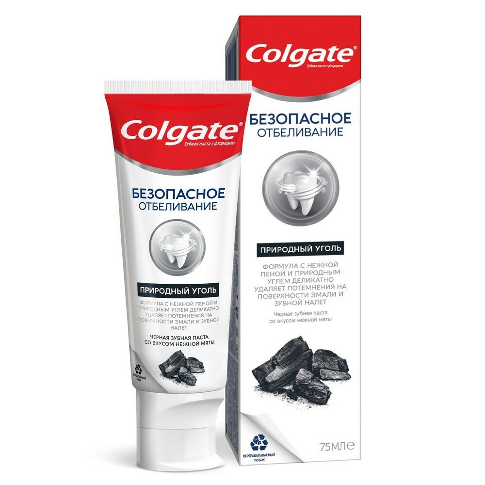Colgate Зубная паста Безопасное отбеливание Природный уголь, 75 мл