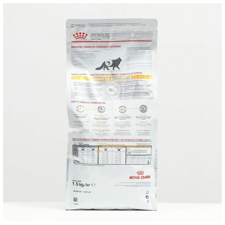 ROYAL CANIN Urinary S/O Moderate Calorie 1,5 кг ветеринарная диета для взрослых кошек предрасположенных к набору лишнего веса 1шт