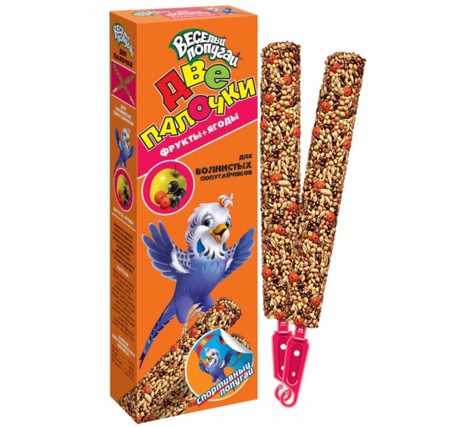 Купить Веселый попугай Лакомство Две палочки фрукты + ягоды для волнистых попугаев, 70 г
