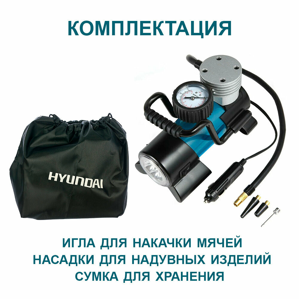HYUNDAI-KIA HY1645 Компрессор автомобильный 40л/мин. 7атм. 12А 12V в прикуриватель (фонарь,сумка) HYUNDAI