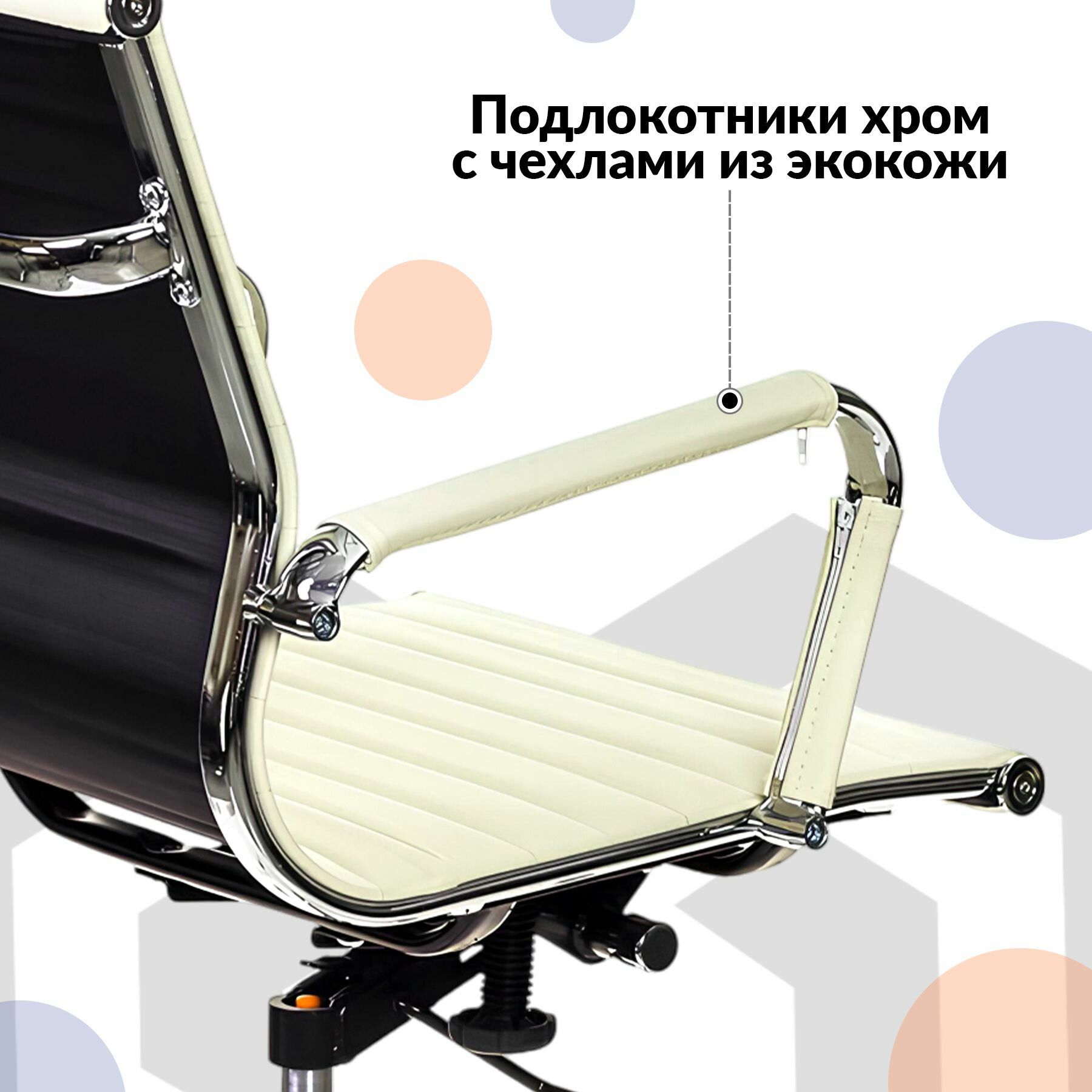 Кресло CH-883-LOW слоновая кость эко.кожа низк.спин. крестов. металл хром / Офисное кресло для директора, руководителя, начальника, менеджера, оператора