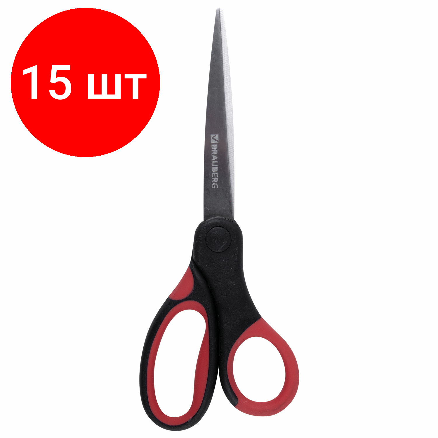 Комплект 24 шт, Ножницы BRAUBERG "Office", 210 мм, красно-черные, прорезиненные ручки, 2-х сторонняя заточка, 231566