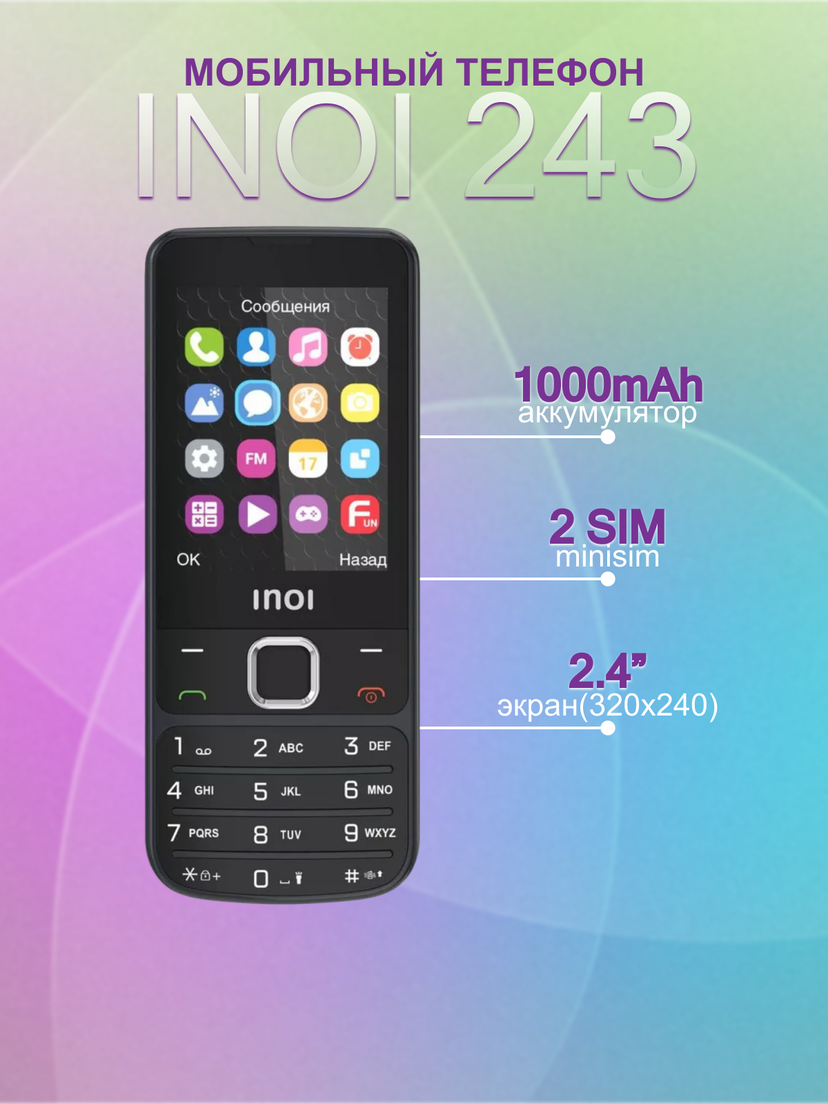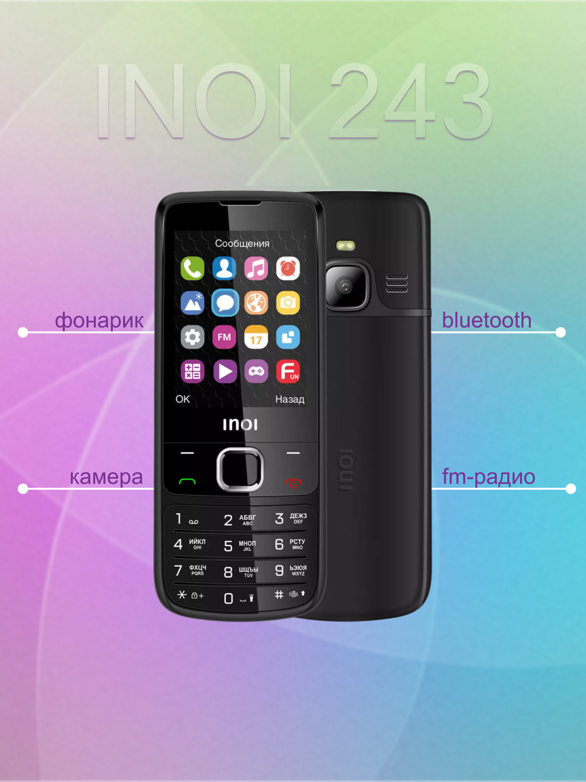 Ниже Вы можете прочитать отзывы на Сотовый телефон Inoi 243, черный, ознакомится с подробными характеристиками, посмотреть интересные обзоры и фотографии на Сотовый телефон Inoi 243, черный.