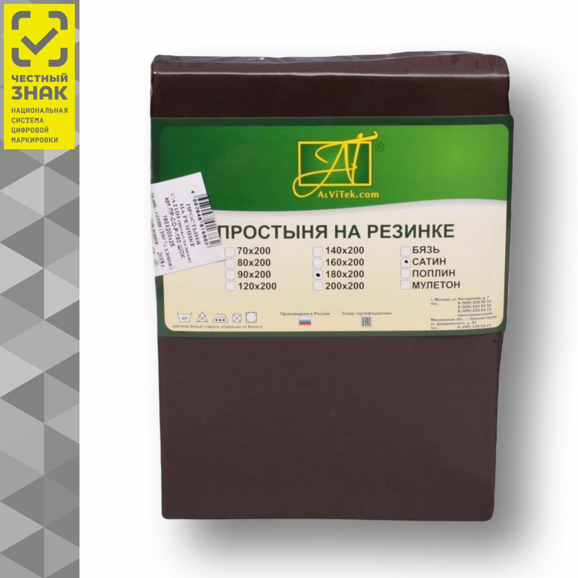 Простыня на резинке Альвитек, 200х200x25, ткань 100% хлопок Сатин, цвет Шоколадный, арт. ПР-СО-Р-200-ШОК