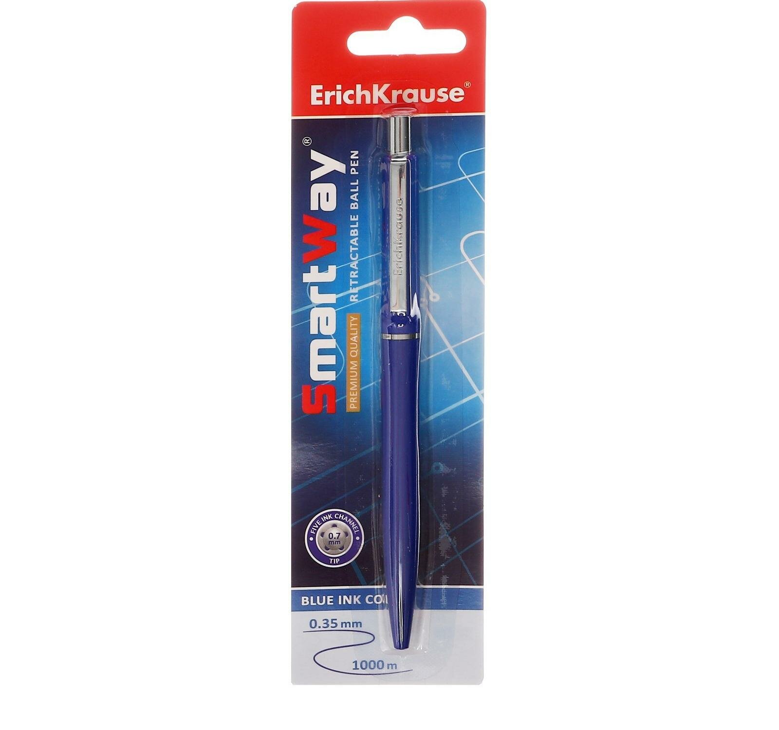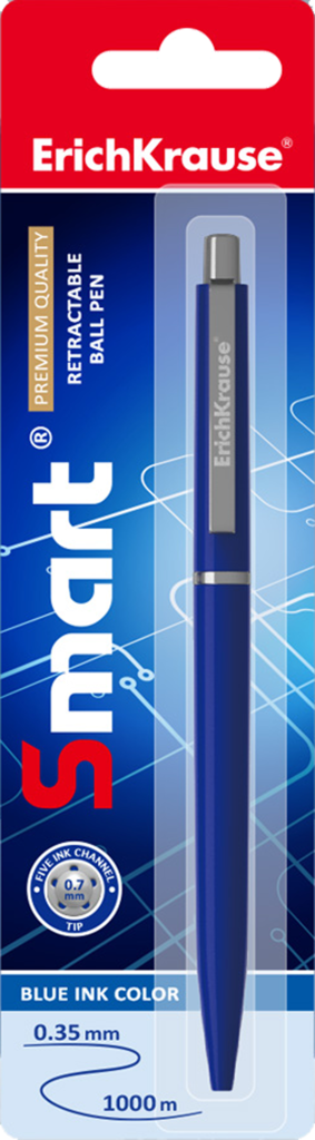 ErichKrause Ручка шариковая автоматическая Smart, узел 0.7 мм, чернила синие, длина линии письма 1000 метров, блистер