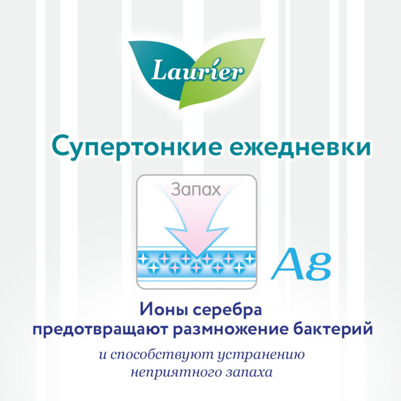 Ежедневные ультратонкие прокладки / Ежедневки / Laurier Beauty Style с ионами серебра без запаха, 2 капли, 14 см, 62 шт
