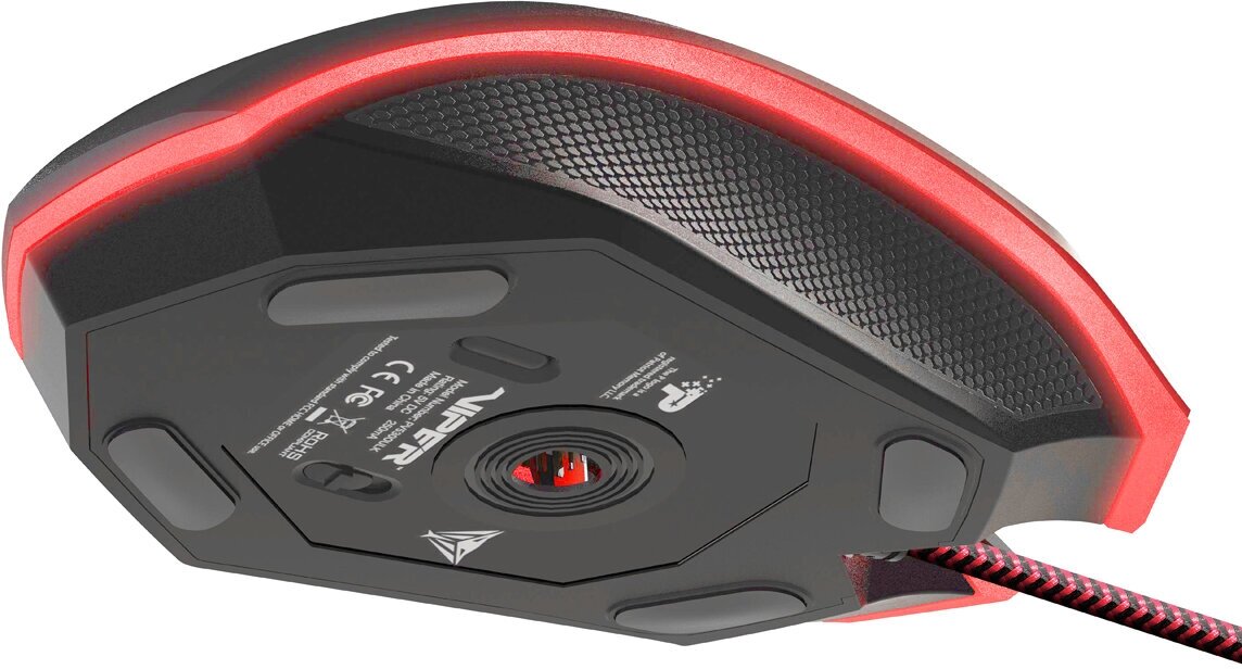 Мышь Patriot Viper V530 PV530OULK оптическая, проводная, 4000 dpi, USB, подсветка красная, цвет: черный