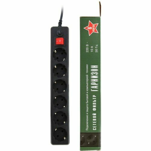 Сетевой фильтр Гарнизон ЕНВ6 - 6 розеток чёрный, 1,8 метра
