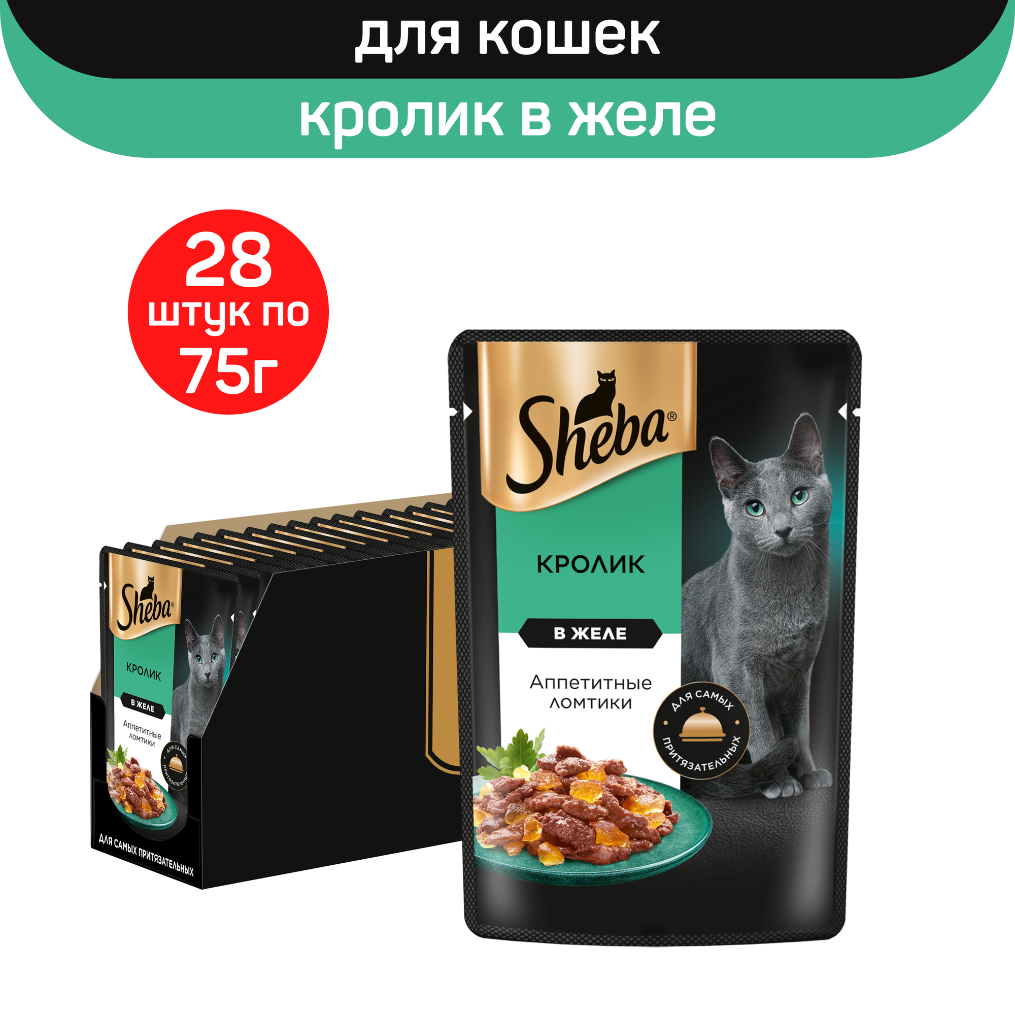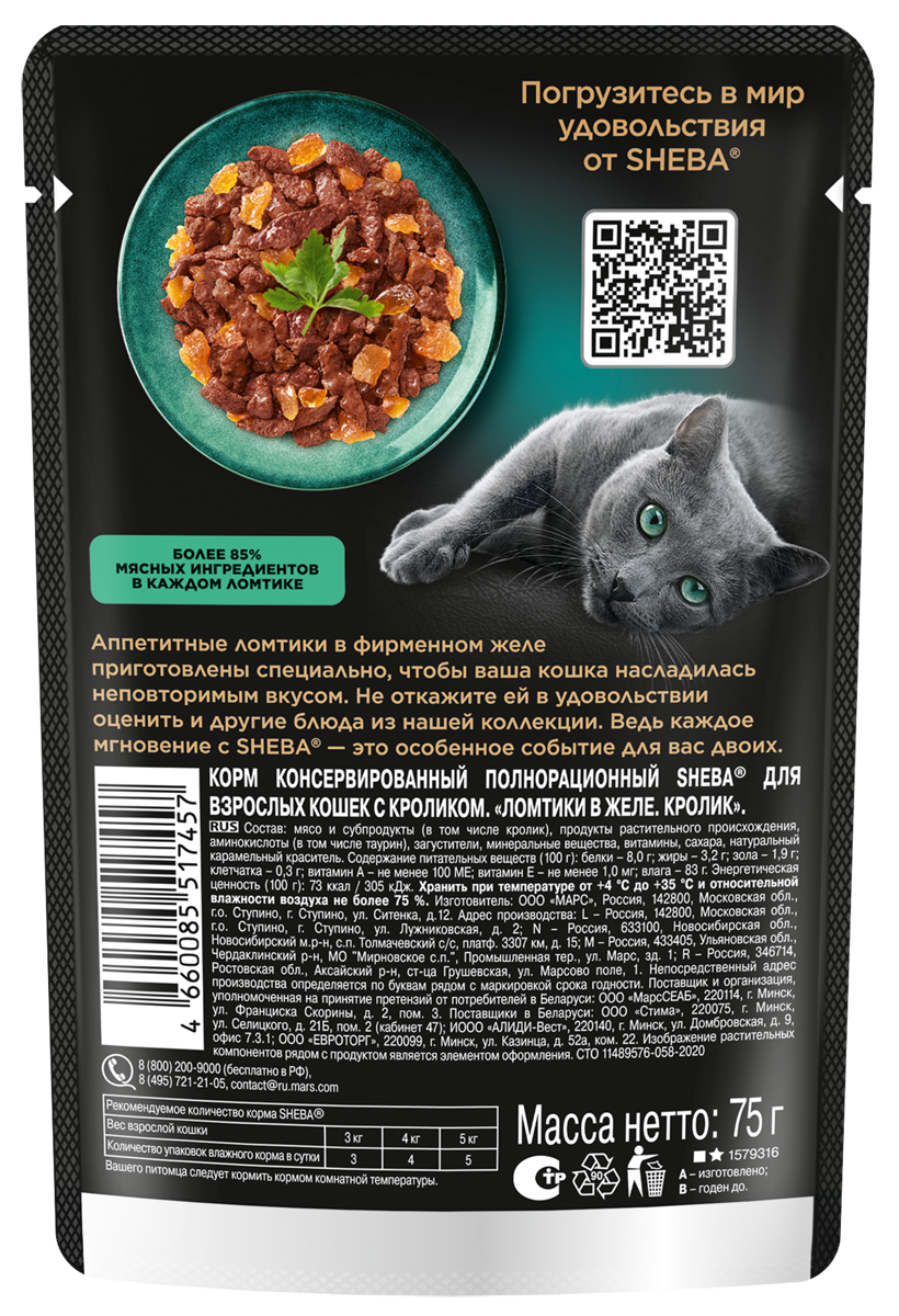 SHEBA для взрослых кошек ломтики в желе с кроликом 75 гр (75 гр х 28 шт)