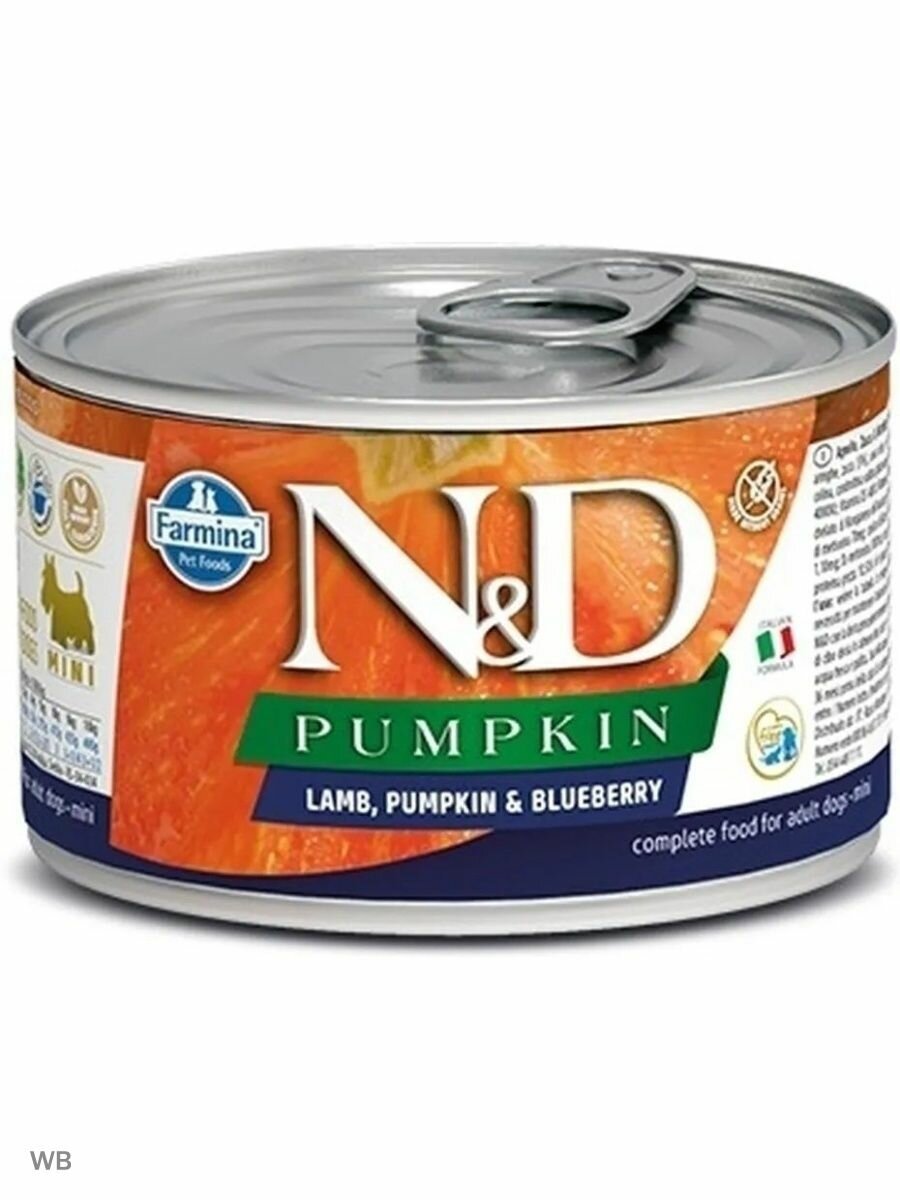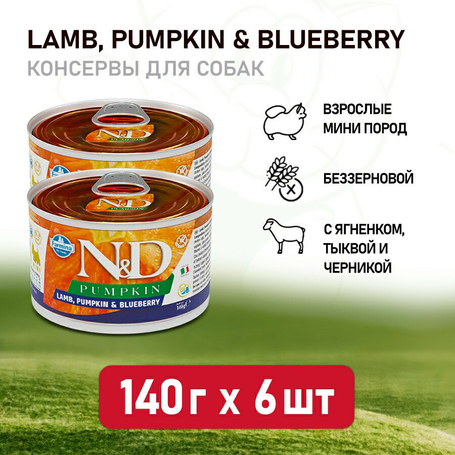 Корм для собак FARMINA N&D Pumpkin для мелких пород, тыква, ягненок и черника банка 140г*6 (упаковка из 6 шт)