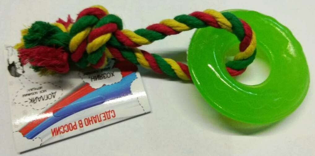 Купить Жевательная игрушка для собак DOGLIKE Кольцо Мини с этикеткой и канатом, 23 см