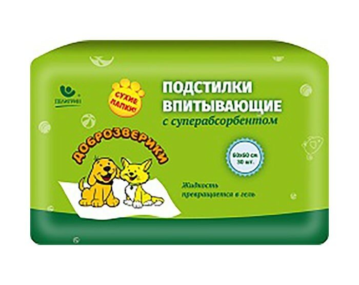 Купить Пеленки для собак и кошек Пелигрин Доброзверики Super, размер 60х60см., 30 шт.
