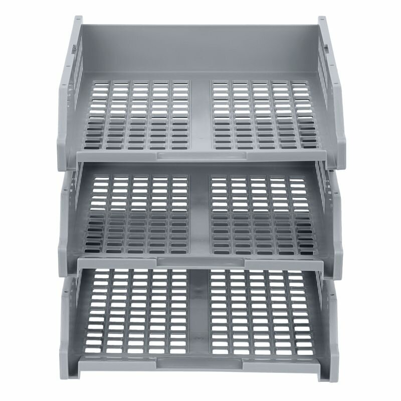 Лоток для бумаг горизонтальный Стамм Strong на металлических стержнях серый (3 штуки в упаковке), 374923