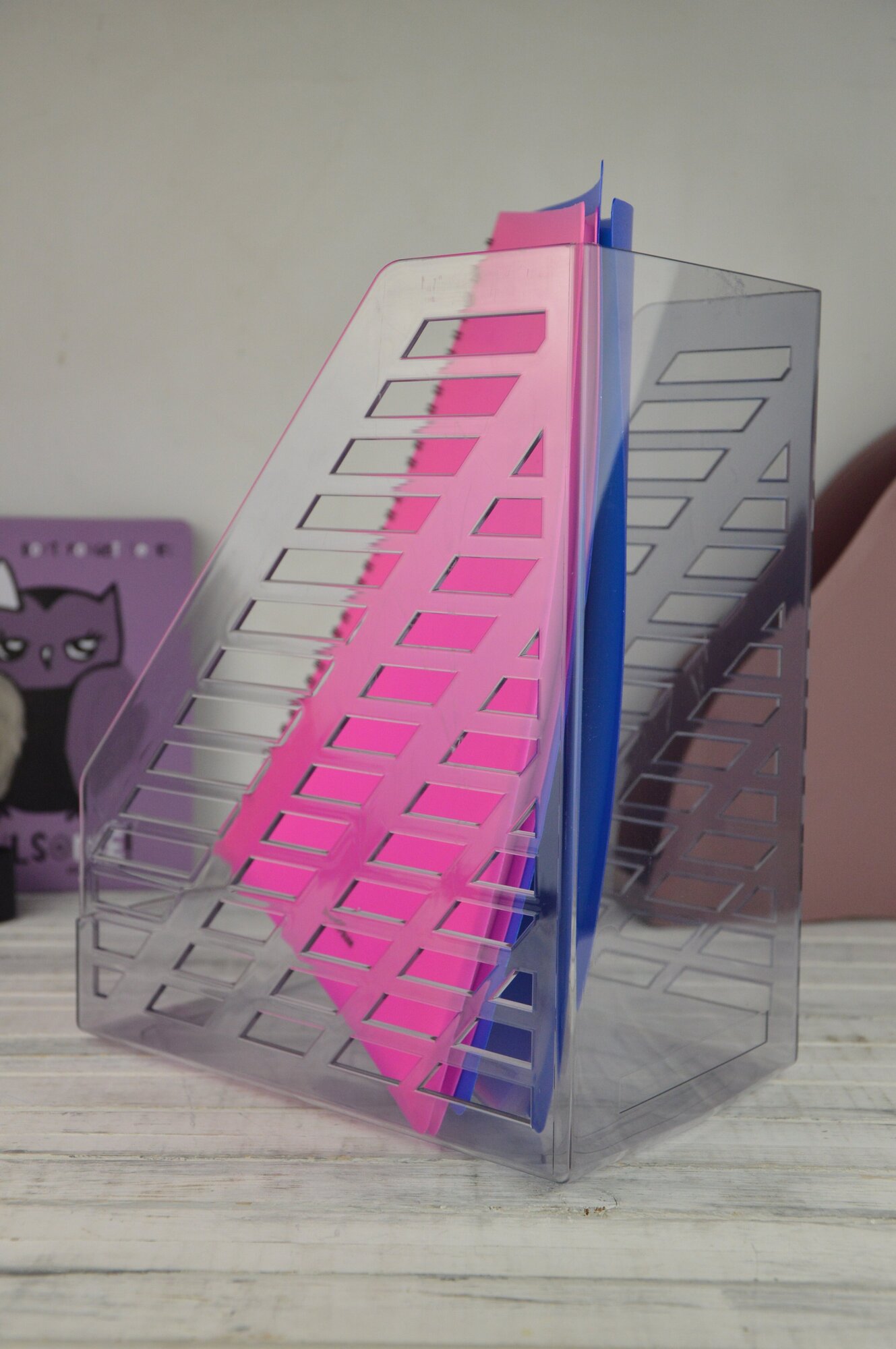 Лоток для бумаг вертикальный СТАММ "XXL", тонированный голубой