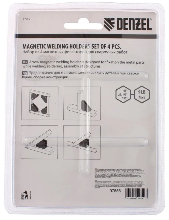 97555 Denzel Набор из 4 магнитных фиксаторов для сварочных работ Denzel 97555