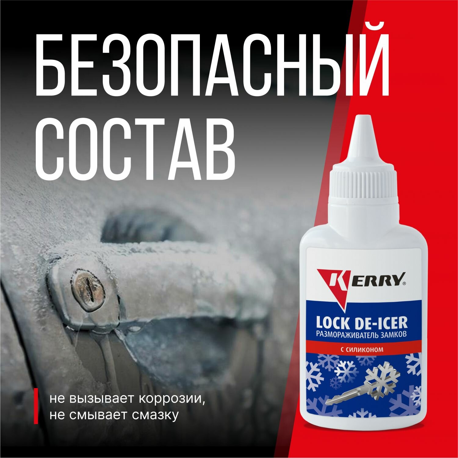KERRY KR-183 Размораживатель замков с силиконом во флаконе с дозатором, 60 мл. KERRY KR-183