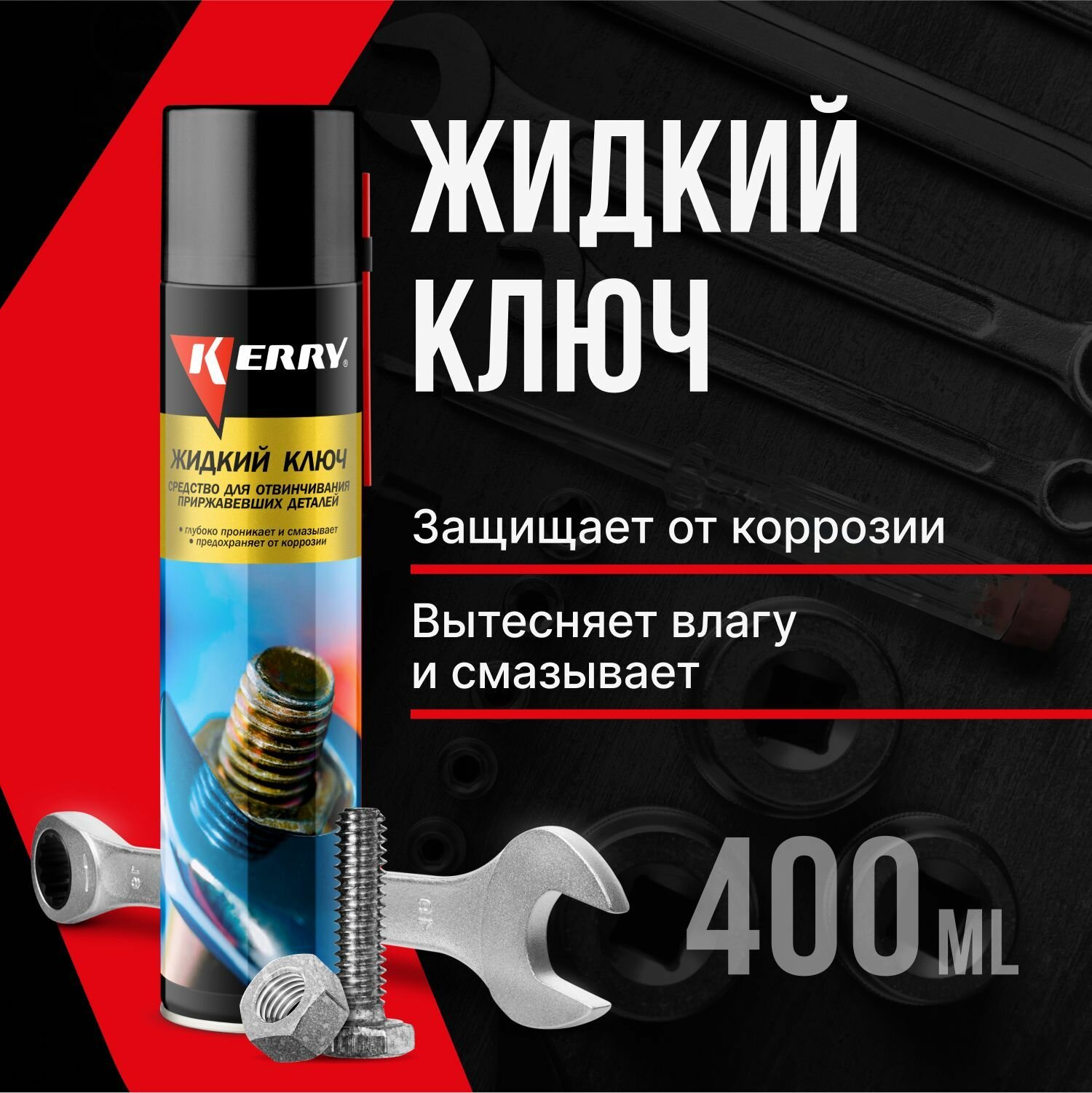 жидкий ключ ср-во для отвинчивания приржавевших деталей, аэрозоль 400мл, KR9404 KERRY KR-940-4