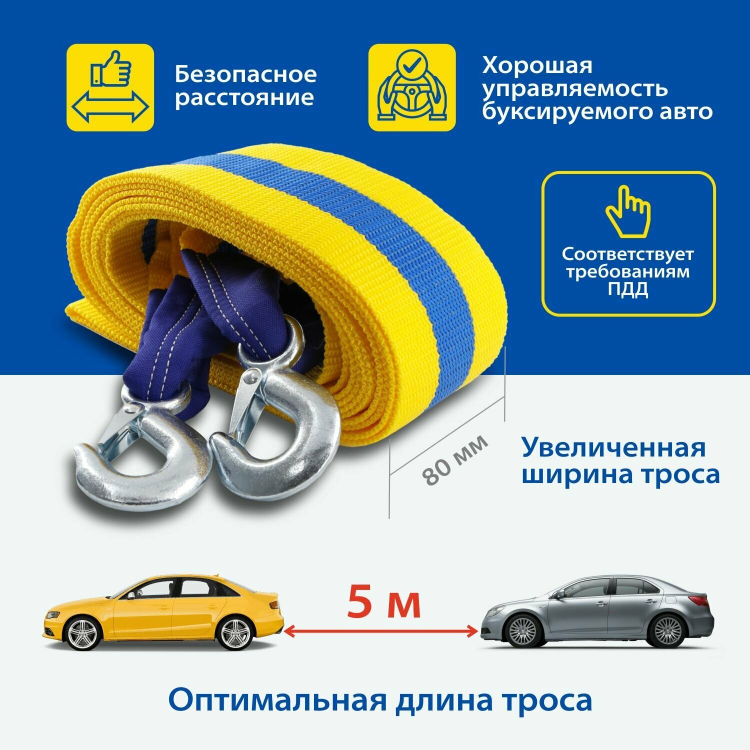 Трос буксировочный GOODYEAR GY004001 5 т, 5 м, желтый/синий
