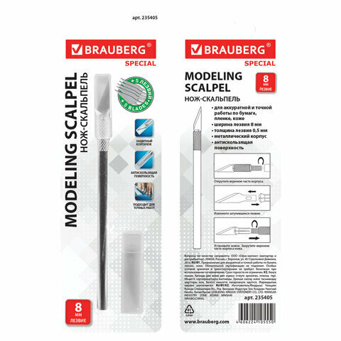 BRAUBERG Нож макетный скальпель "Special", 6 лезвий в комплекте, металлический корпус, блистер, 235405