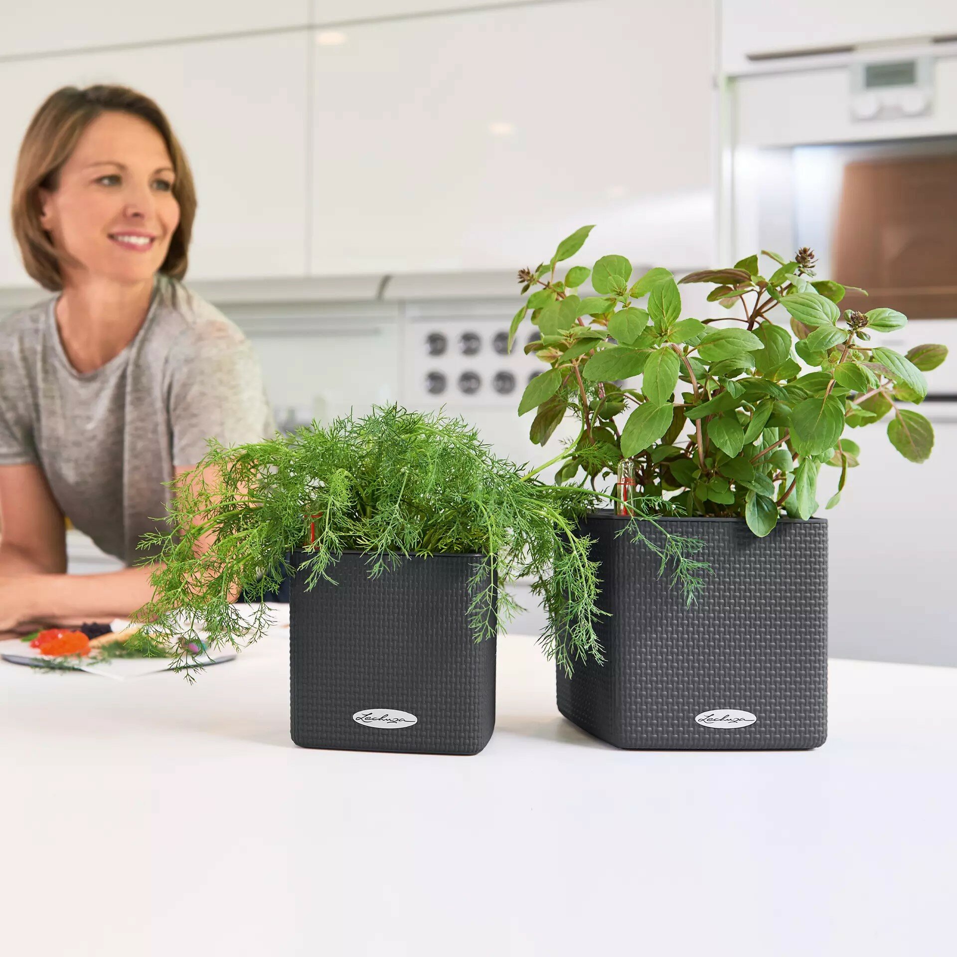 Кашпо с автополивом Lechuza CUBE Color 14, L14 W14 H13,5 см, темно-серое матовое / горшок для цветов