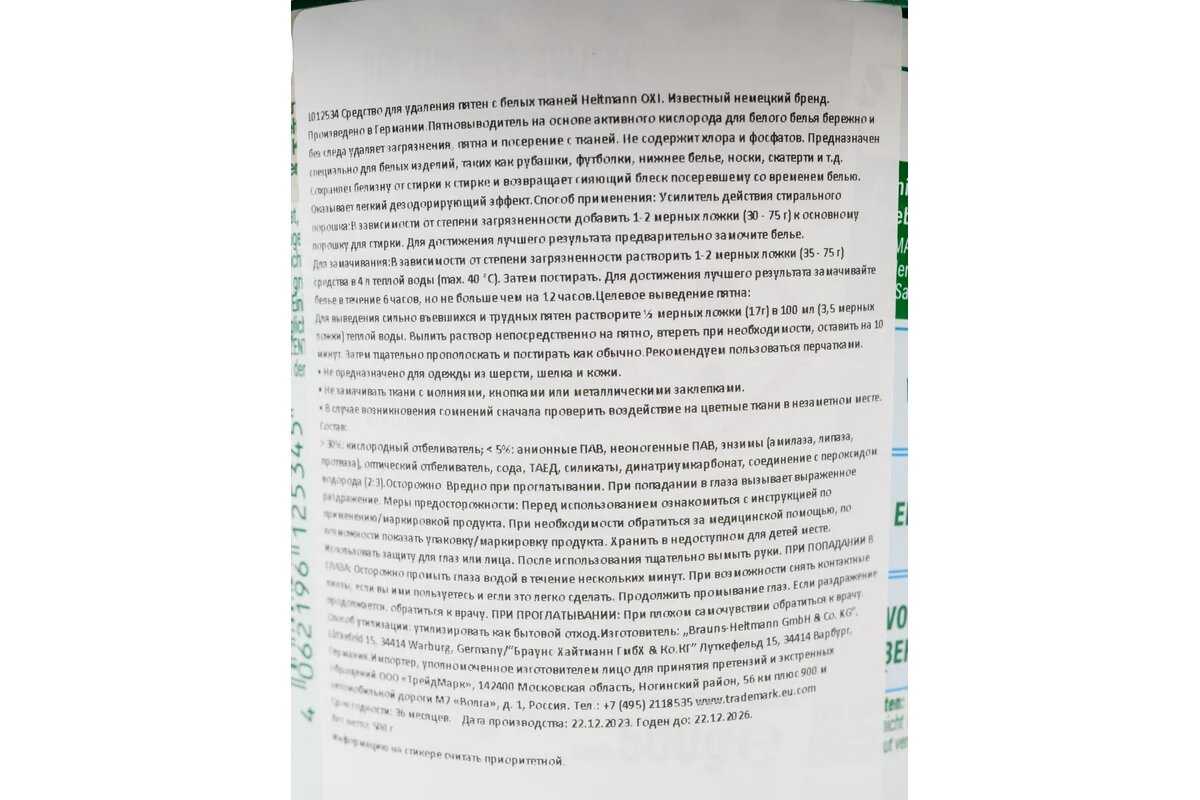 Ниже Вы можете прочитать отзывы на Heitmann Пятновыводитель Oxi Power-Weiss для белых тканей, 500 г, ознакомится с подробными характеристиками, посмотреть интересные обзоры и фотографии на Heitmann Пятновыводитель Oxi Power-Weiss для белых тканей, 500 г.