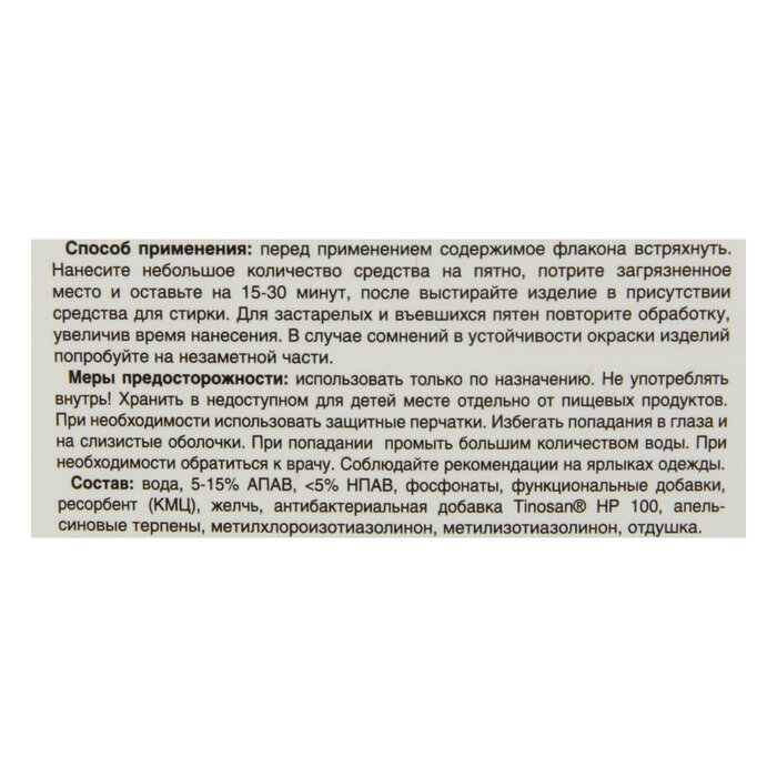 | Средство | пятновыводитель |