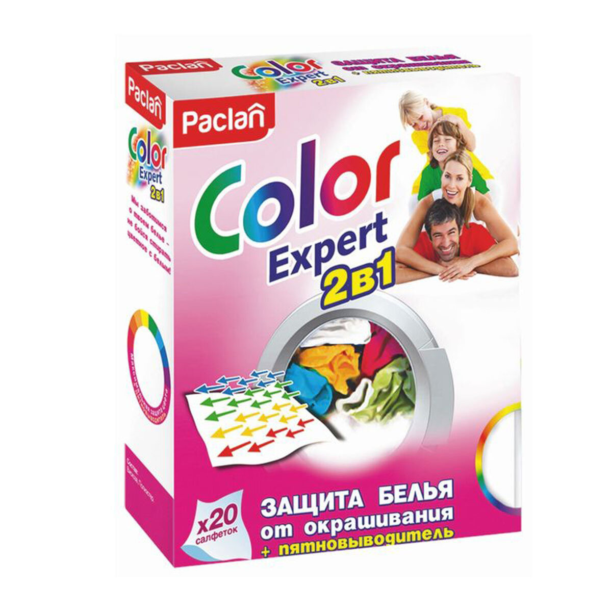 Салфетки защиты белья от окрашивания + пятновыводитель Paclan Color Expert, 20 шт.