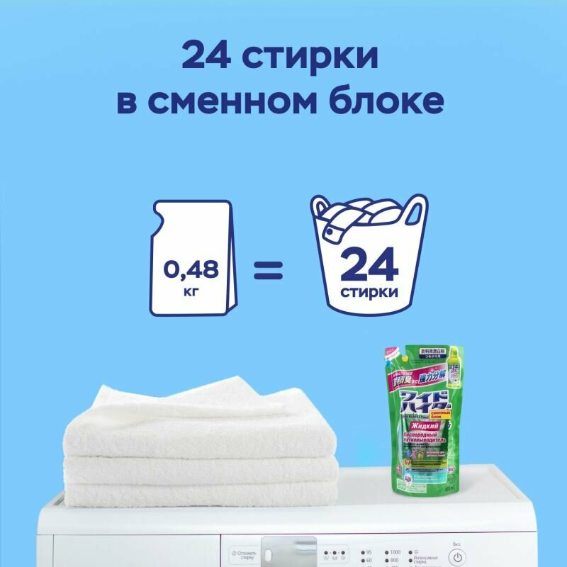 Kao Wide haiter EX Power Жидкий кислородный отбеливатель-пятновыводитель для цветного белья 480 мл запасной блок