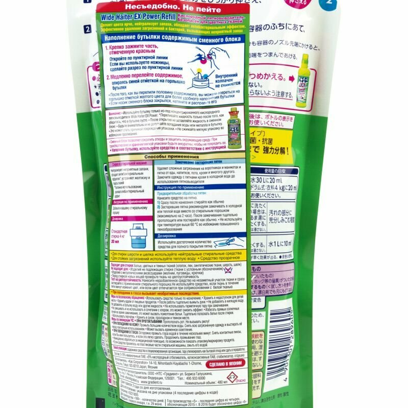 Пятновыводитель KAO Wide Haiter EX Power Refill жидкий для цветного белья мягкая упаковка 480 мл