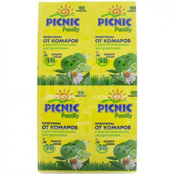 Пластины от комаров "Picnic Family", с растительными экстрактами, 10 шт